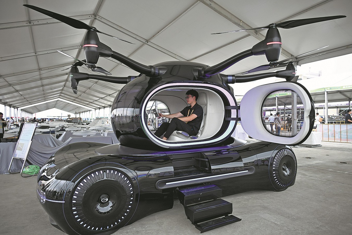 GAC Group's flying car GOVY on display during the 15th China International Aviation and Aerospace Exhibition in Zhuhai, Guangdong province, in November. (Chen Chuhong/China News Service)