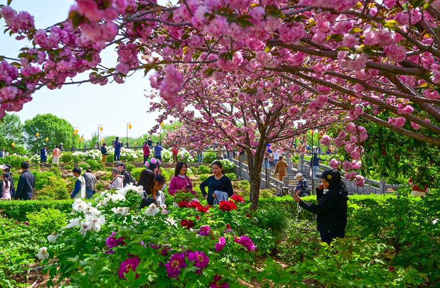 Tourists view peony flowers in Luoyang, central China's Henan Province. (Photo/Li Weichao)