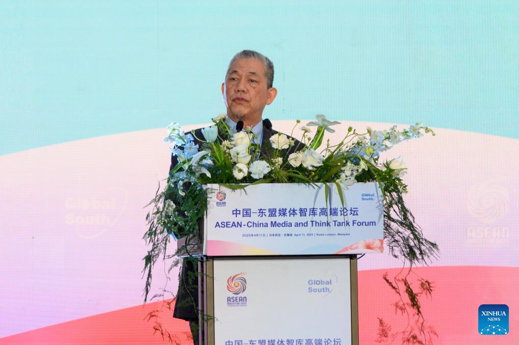 Wong Chun Wai, chairman of Malaysian National News Agency (Bernama), delivers a speech at the China-ASEAN Media and Think Tank Forum in Kuala Lumpur, Malaysia, April 11, 2025. (Xinhua/Cheng Yiheng)
