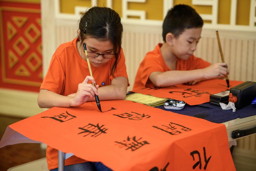 People participate in a Chinese calligraphy competition in Kuala Lumpur, Malaysia, Feb. 9, 2025. (Photo by Chong Voon Chung/Xinhua)