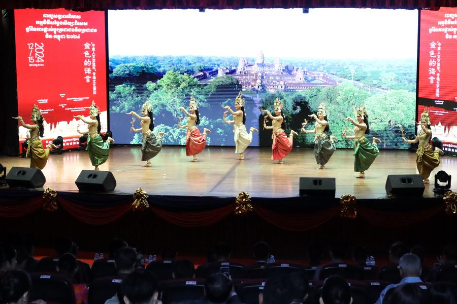 Cambodian artists perform during a Cambodia-China cultural show in Phnom Penh, Cambodia on Dec. 15, 2024. (Photo by Phearum/Xinhua)