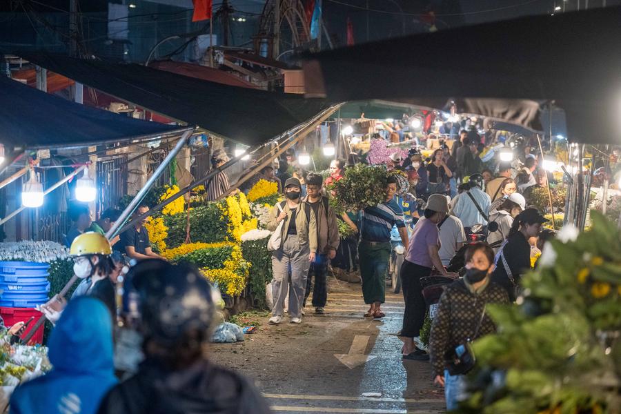 This photo taken on March 28, 2025 shows a view of Quang Ba Flower Market in Hanoi, Vietnam, March 28, 2025. (Xinhua/Zhu Wei)