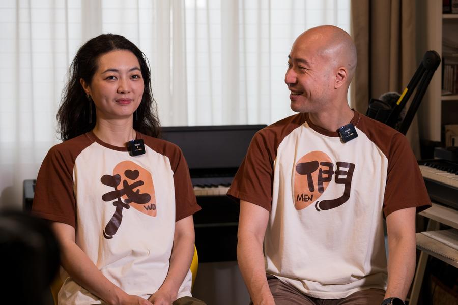 Dong Quang Vinh and his wife Mo Shuangshuang perform at home in Hanoi, Vietnam, March 28, 2025. (Xinhua/Zhu Wei)