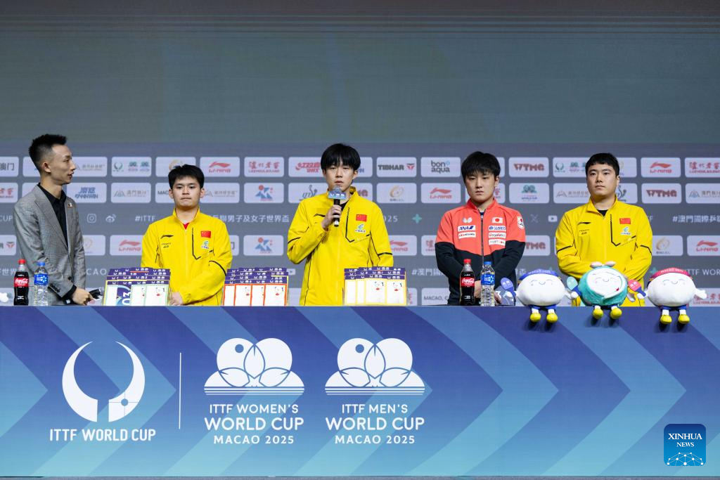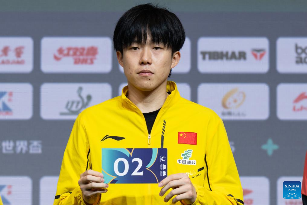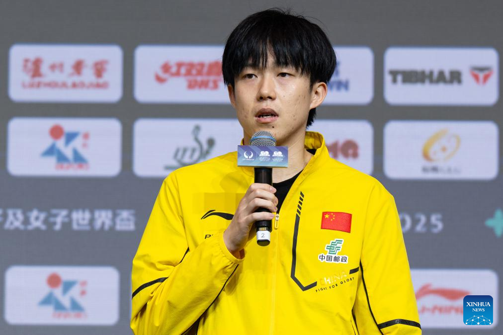 Wang Chuqin of China attends the drawing ceremony of the ITTF Men's and Women's World Cup in Macao, China, April 13, 2025. (Xinhua/Cheong Kam Ka)