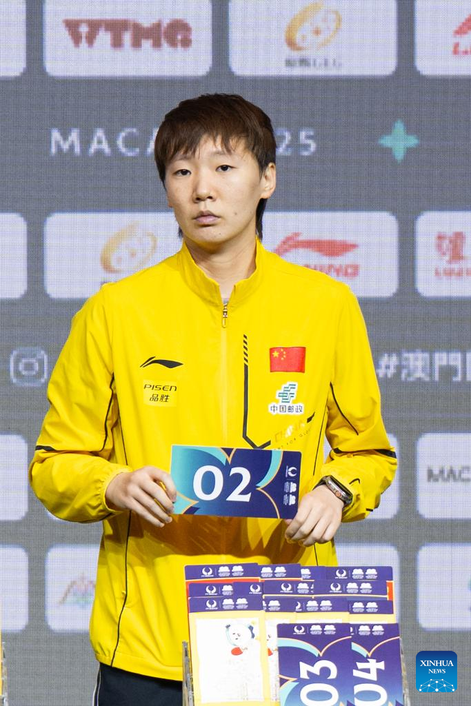 Sun Yingsha of China attends the drawing ceremony of the ITTF Men's and Women's World Cup in Macao, China, April 13, 2025. (Xinhua/Cheong Kam Ka)