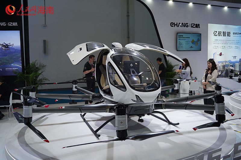 A drone showcased at the 5th China International Consumer Products Expo (CICPE), which kicked off in Haikou, south China's Hainan Province, on April 13, 2025. (People's Daily Online/Meng Fansheng)