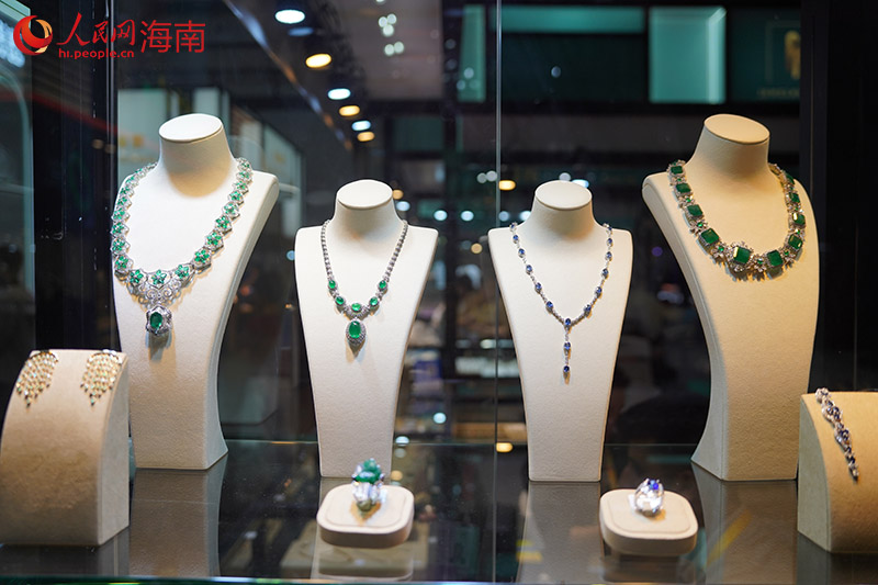 Photo shows jewelry exhibits shining under the lights at the 5th China International Consumer Products Expo (CICPE), which kicked off in Haikou, south China's Hainan Province, on April 13, 2025. (People's Daily Online/Meng Fansheng)