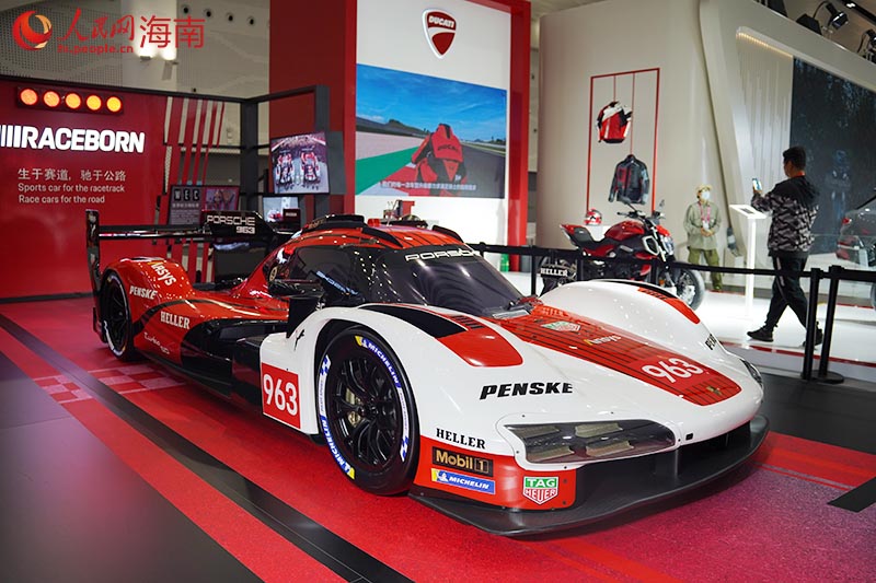 Photo shows a luxury sports car on display at the 5th China International Consumer Products Expo (CICPE), which kicked off in Haikou, south China's Hainan Province, on April 13, 2025. (People's Daily Online/Meng Fansheng)