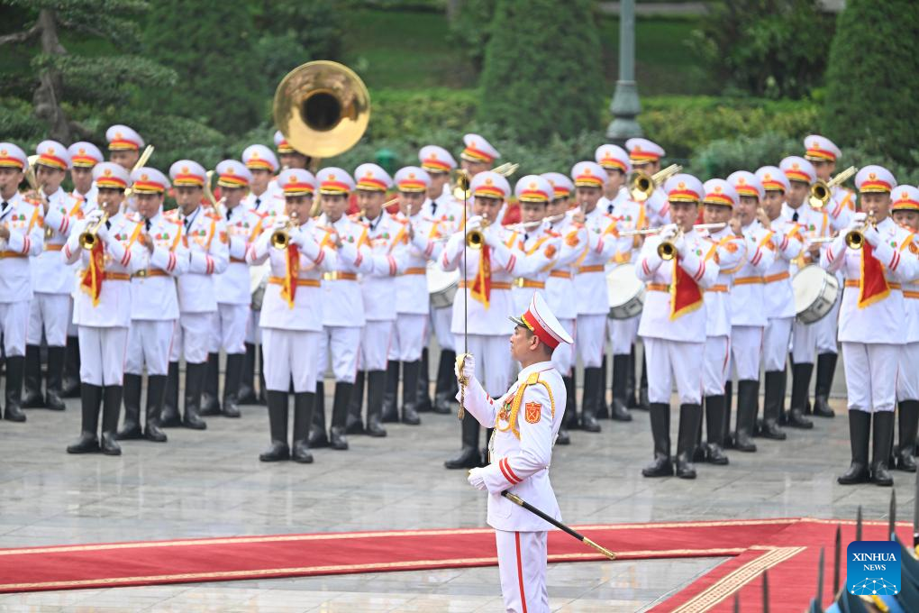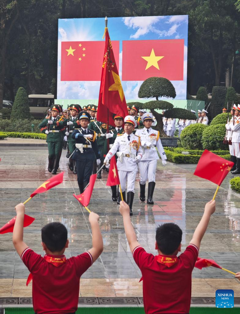 HANOI, April 14 (Xinhua) -- Xi Jinping, general secretary of the Communist Party of China Central Committee and Chinese president, attended here on Monday a welcome ceremony held by To Lam, general secretary of the Communist Party of Vietnam Central Committee.