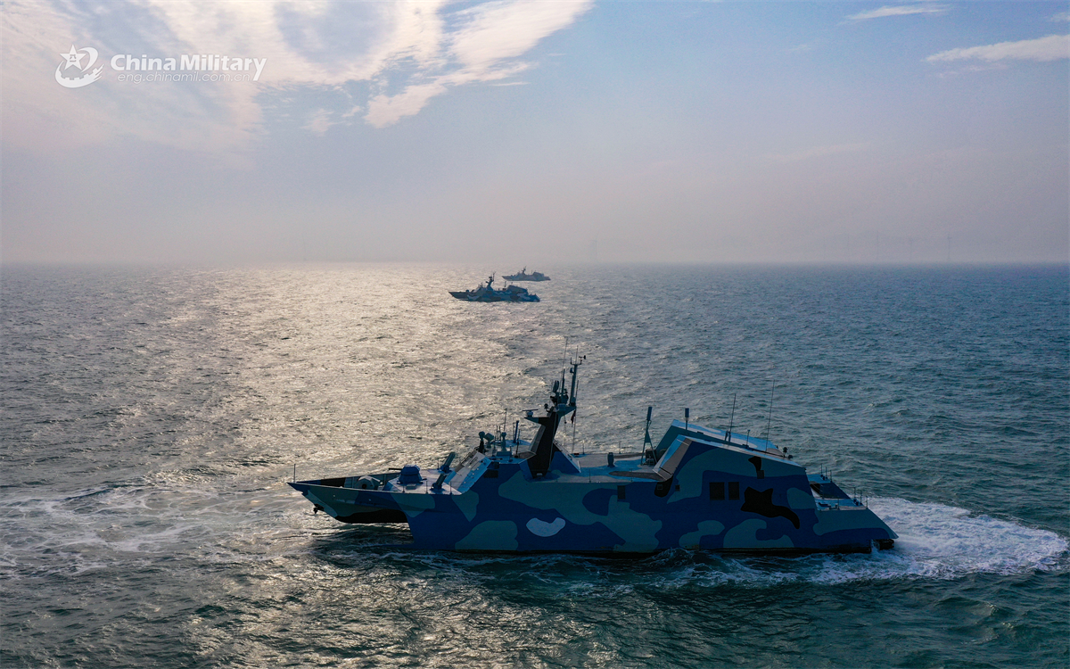 A fast attack missile boat attached to the Chinese PLA Navy sails to a designated area during a maritime training exercise on April 5, 2025. (eng.chinamil.com.cn/Wang Heqiu)