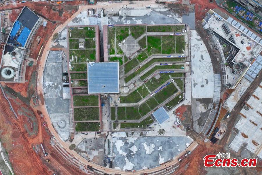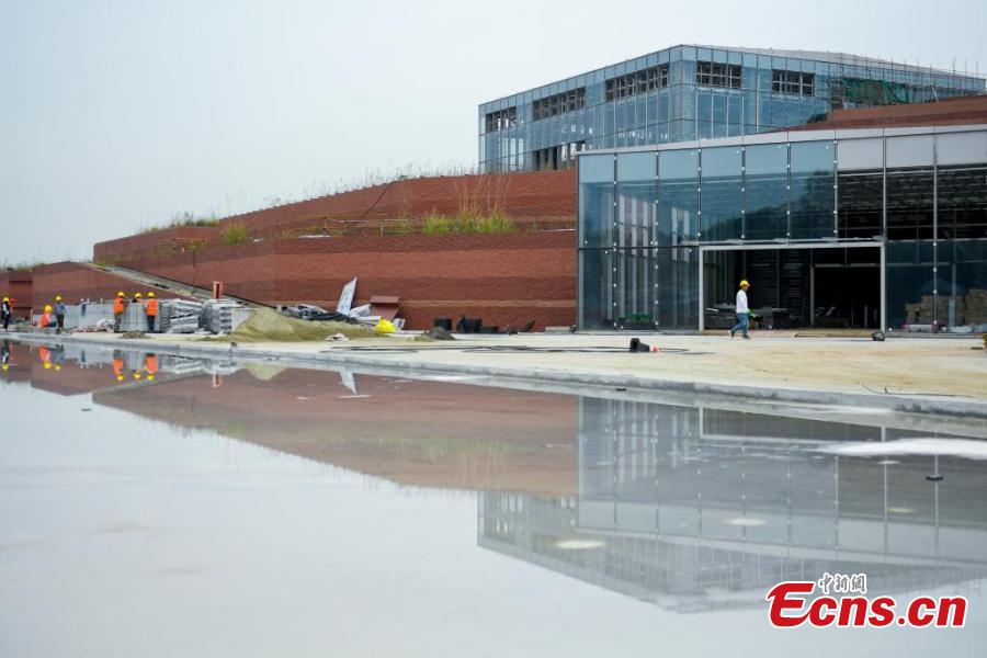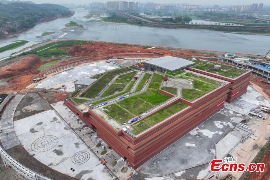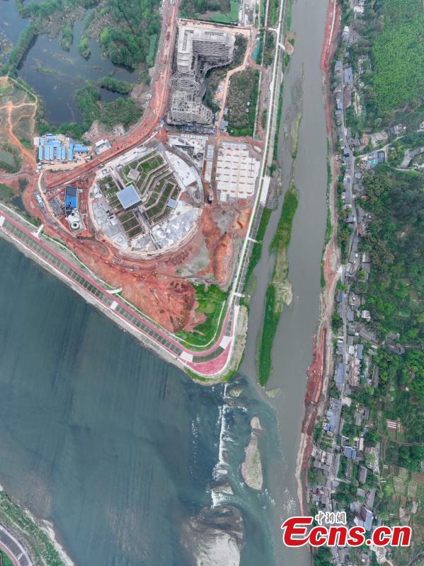 Aerial view of the construction site of the Museum of Jiangkou Battlefield in Meishan, southwest China's Sichuan Province, April 14, 2025. (China News Service/Liu Zhongjun)