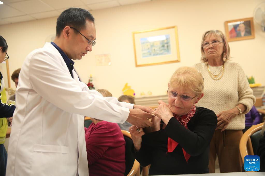 VALLETTA, April 15 (Xinhua) -- Elderly people at the Santa Venera day care centre in central Malta received a warm and enlightening visit on Tuesday from the 20th Chinese medical team to Malta, affiliated with the Mediterranean Regional Centre for Traditional Chinese Medicine (MRCTCM).