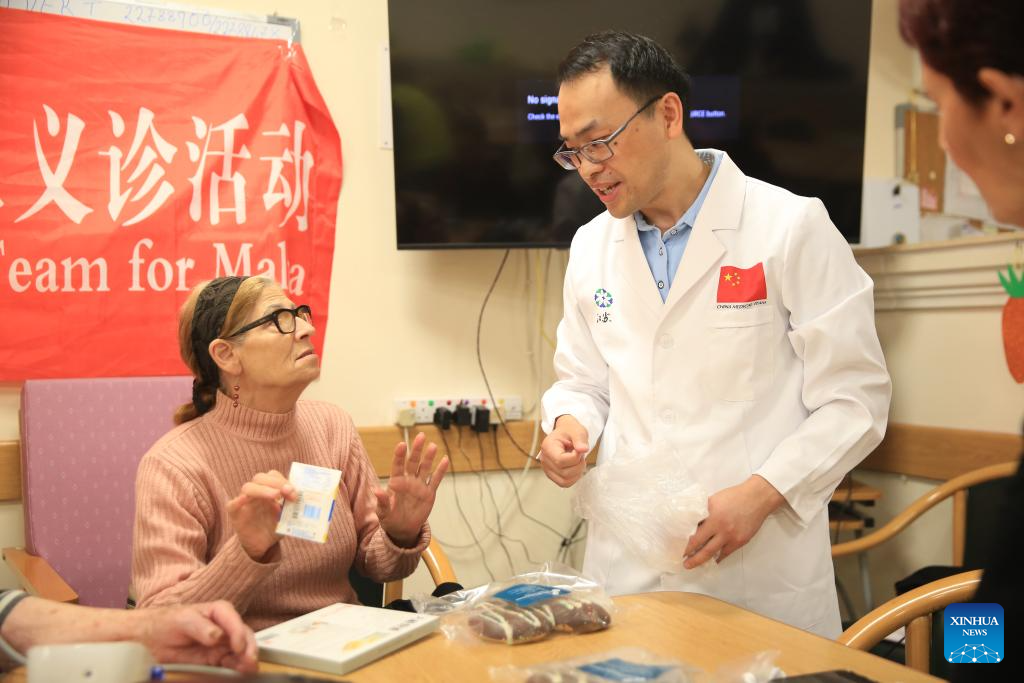 Members of the Chinese medical team for Malta offer health consultations to local residents in Santa Venera, Malta, on April 15, 2025. Elderly people at the Santa Venera day care centre in central Malta received a warm and enlightening visit on Tuesday from the 20th Chinese medical team for Malta, affiliated with the Mediterranean Regional Centre for Traditional Chinese Medicine (MRCTCM). (Xinhua/Chen Wenxian)