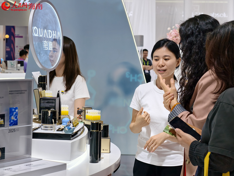 A visitor is seen experiencing a beauty and skincare product at the ongoing fifth China International Consumer Products Expo in Haikou, south China's Hainan Province. (People's Daily Online/Fu Zemin)
