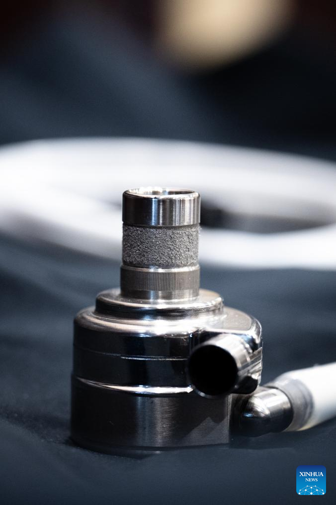 This photo taken on April 14, 2025 shows the magnetically levitated biventricular assist device designed for children in Wuhan, central China's Hubei Province. (Xinhua/Xiao Yijiu)