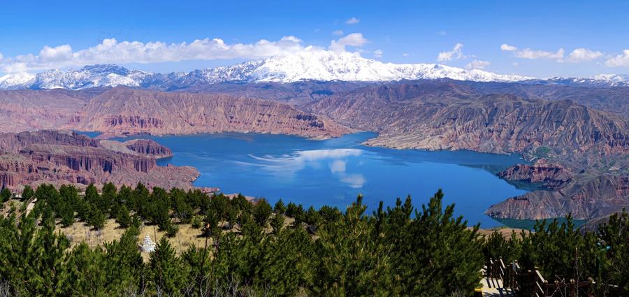 An aerial drone photo taken on April 28, 2024 shows a view of the Kanbula National Geopark in Huangnan Tibetan Autonomous Prefecture, northwest China's Qinghai Province. (Photo by Yangel Dongrub/Xinhua)