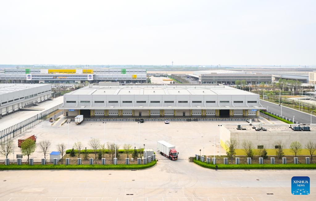 This photo taken on April 9, 2025 shows the customs inspection center connected to the comprehensive bonded zone of Beijing Daxing International Airport in Beijing, capital of China. (Xinhua/Chen Zhonghao)