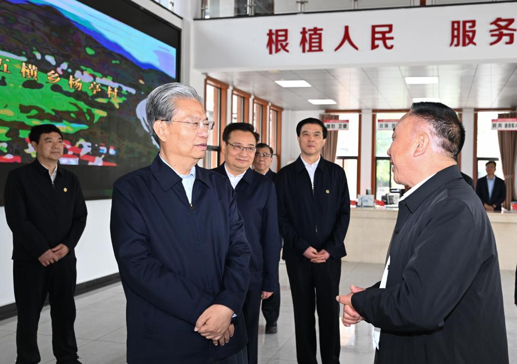 Zhao Leji, a member of the Standing Committee of the Political Bureau of the Communist Party of China Central Committee and chairman of the National People's Congress Standing Committee, visits Yangting Village of Wuheng Township, Anqing City, east China's Anhui Province, April 16, 2025. Zhao made a research and investigation tour to the provinces of Jiangsu and Anhui in east China from Monday to Thursday. (Xinhua/Li Xiang)