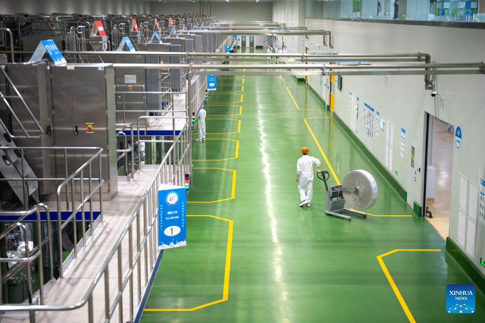 This photo taken on April 17, 2025 shows a view of a global intelligent manufacturing benchmark base for liquid milk at the Global Intelligent Manufacturing Industrial Park of Yili Modern Intelligent Health Valley in Tumd Left Banner in Hohhot, north China's Inner Mongolia Autonomous Region. In recent years, Inner Mongolia Autonomous Region has given full play to its resource endowment and industrial advantages, and promoted the upgrading of the whole chain of dairy industry with scientific and technological innovation, advancing the quality development of dairy industry. (Xinhua/Ma Jinrui)