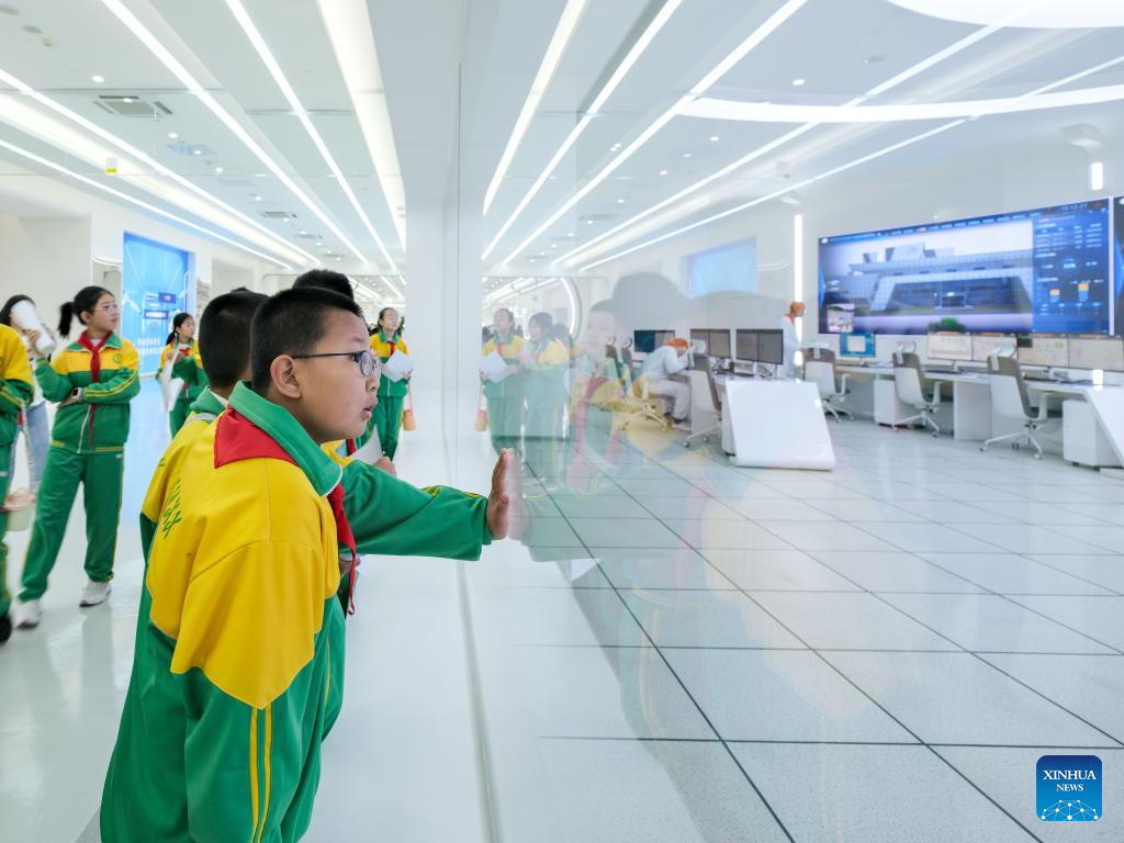 Children visit the Global Intelligent Manufacturing Industrial Park of Yili Modern Intelligent Health Valley in Tumd Left Banner in Hohhot, north China's Inner Mongolia Autonomous Region, April 17, 2025. In recent years, Inner Mongolia Autonomous Region has given full play to its resource endowment and industrial advantages, and promoted the upgrading of the whole chain of dairy industry with scientific and technological innovation, advancing the quality development of dairy industry. (Xinhua/Ma Jinrui)