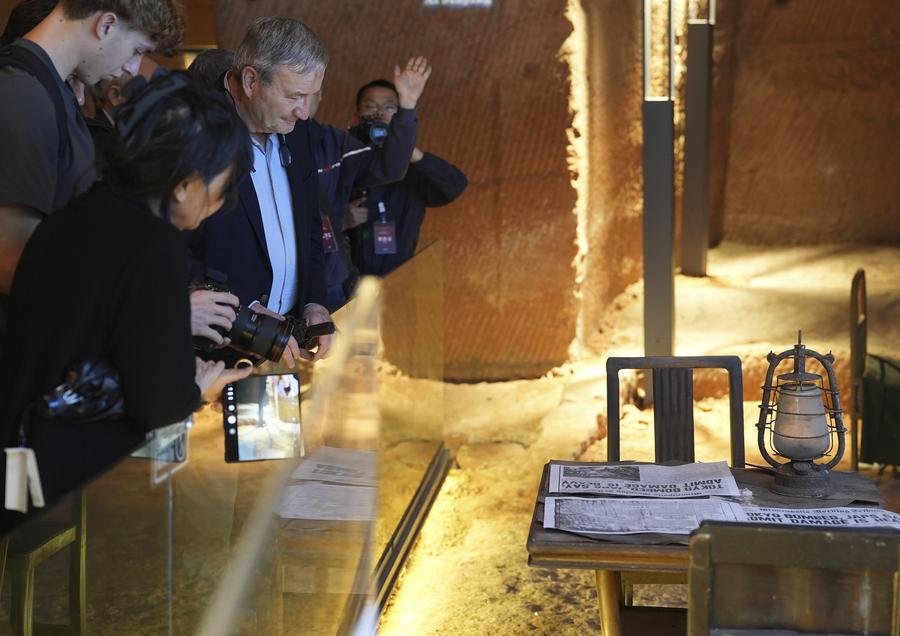 Guests visit the site where the U.S. airmen of the Doolittle Raid were rescued by locals in Quzhou City, east China's Zhejiang Province, April 17, 2025. (Xinhua/Huang Zongzhi)
