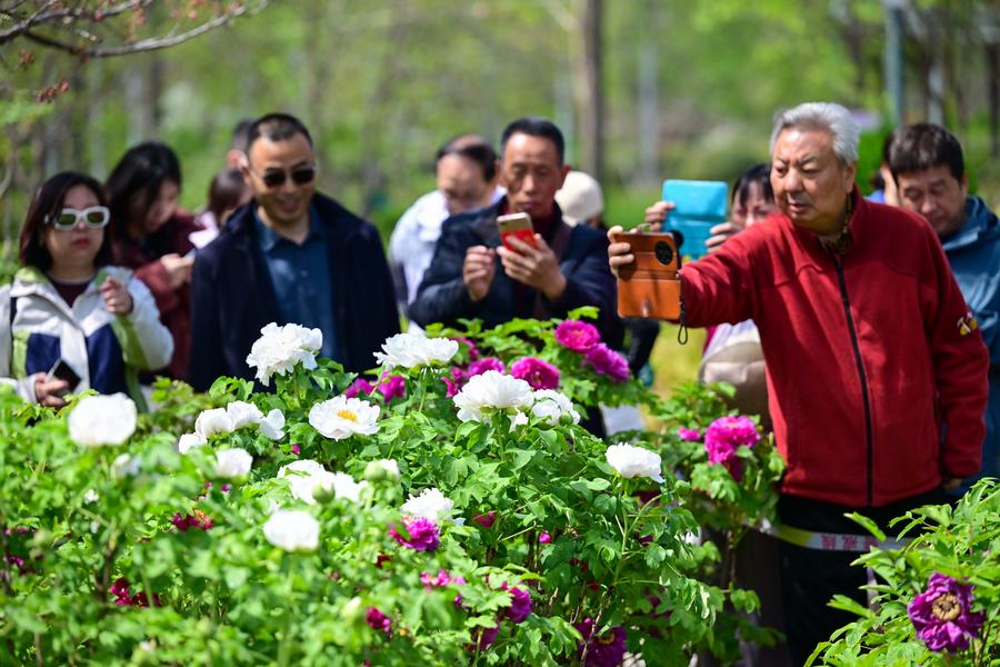Tourists take photos of peony flowers at the Sui and Tang Dynasties City Ruins Botanical Garden in Luoyang, central China's Henan Province, March 30, 2025. (Photo by Li Weichao/Xinhua)