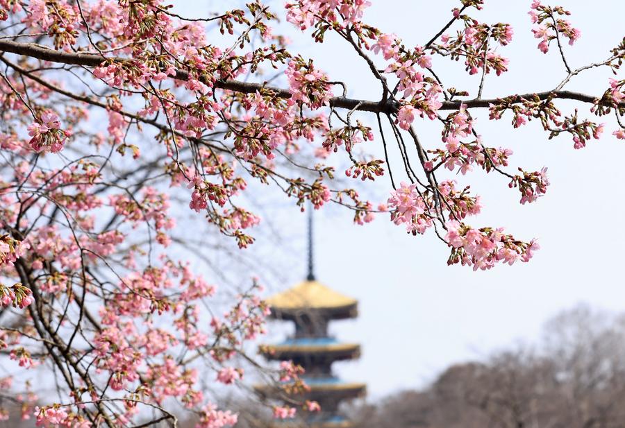 This photo taken on March 6, 2025 shows cherry blossoms at the East Lake Cherry Blossom Garden in Wuhan, central China's Hubei Province. (Photo by Zhao Jun/Xinhua)