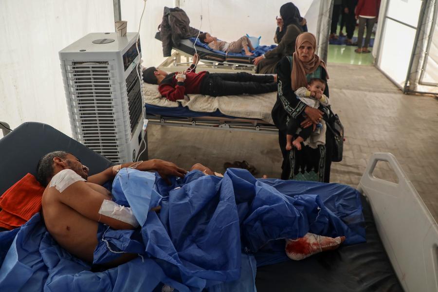 GAZA, April 20 (Xinhua) -- On a rusty stretcher inside a makeshift tent at Gaza City's Al-Shifa Hospital, 38-year-old Khader Abu Ajwa has been lying in agony for days, awaiting surgery that may never come.