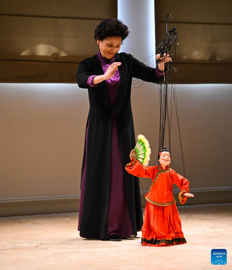 Chinese artists perform Quanzhou string puppetry at Bogazici University in Istanbul, Türkiye