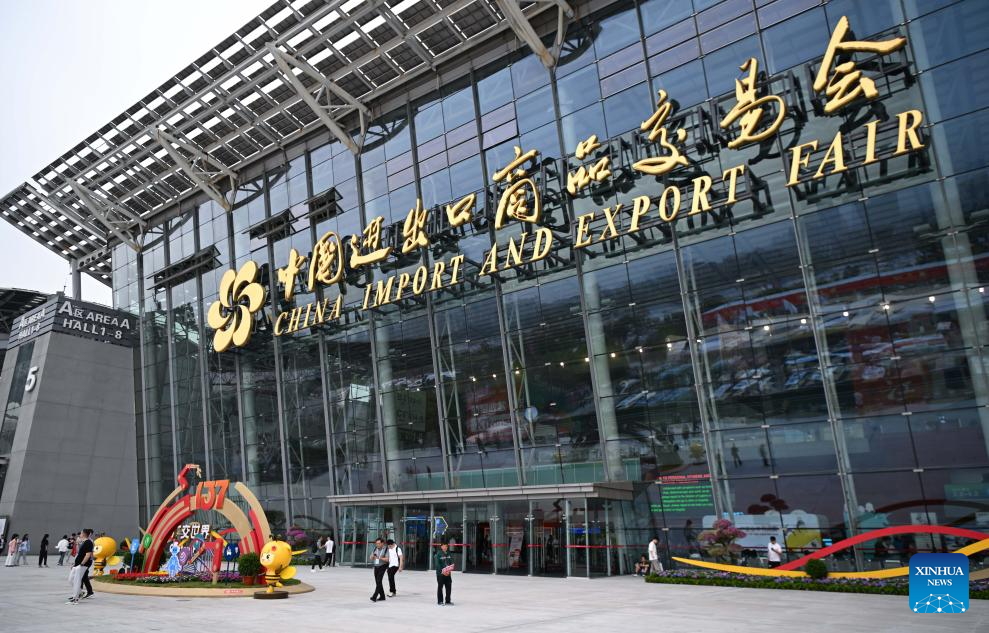 This photo taken on April 18, 2025 shows the venue of the 137th edition of the China Import and Export Fair in Guangzhou, south China's Guangdong Province. The first phase of the 137th edition of the China Import and Export Fair, also known as the Canton Fair, concluded here on Saturday. By April 19, a total of 148,585 overseas buyers from 216 countries and regions had attended the event, marking a 20.2 percent increase compared to the same period last year. (Xinhua/Deng Hua)