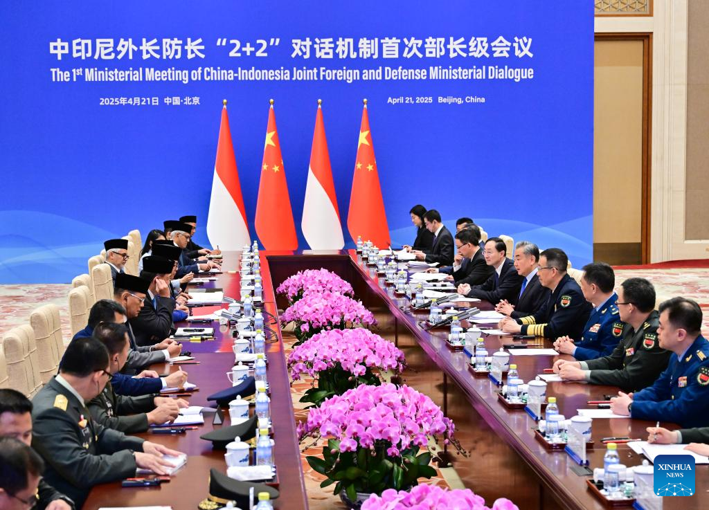 BEIJING, April 21 (Xinhua) -- China and Indonesia held the First Ministerial Meeting of Joint Foreign and Defense Ministerial Dialogue in Beijing on Monday.