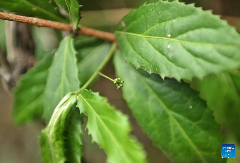 This photo taken on April 11, 2025 shows the buds of Euonymus chengduanus in the Longquan Mountains in Chengdu, southwest China's Sichuan Province. Chinese researchers have discovered a new species of Celastraceae in Chengdu City of Sichuan Province, and named it Euonymus chengduanus. Their findings have been published in a recent edition of the Ecology and Evolution, according to the Chengdu Institute of Biology under Chinese Academy of Sciences. (Xinhua/Liu Kun)