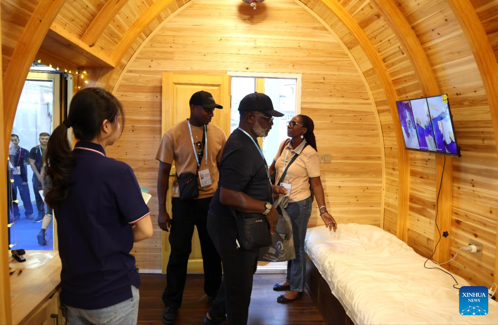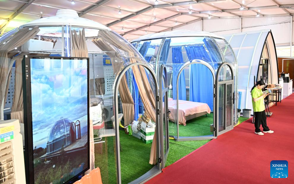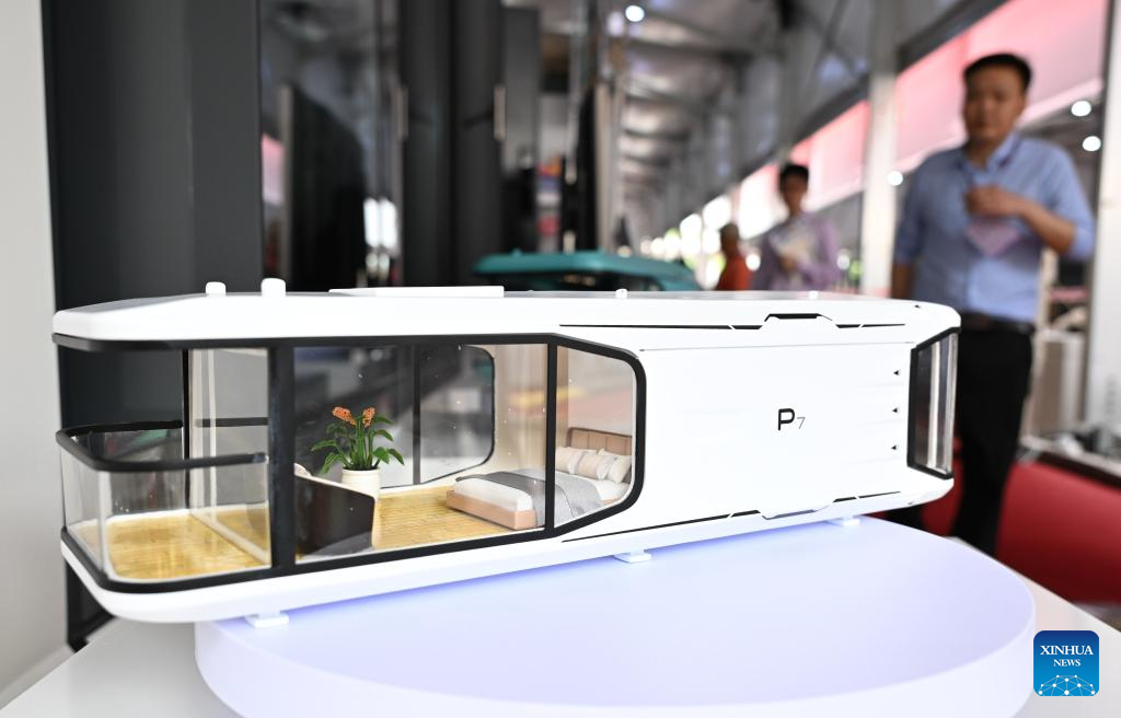 This photo taken on April 23, 2025 shows an area featuring integrated housing products at the 137th edition of the Canton Fair in Guangzhou, south China's Guangdong Province. The second phase of the 137th edition of the Canton Fair themed on quality home furnishings opened on Wednesday. An area featuring integrated housing products was set up for the first time at the event to showcase mobile houses, modular houses, expandable houses and other related products. (Xinhua/Deng Hua)