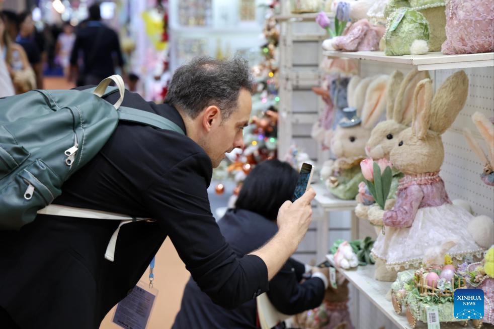 A gifts and premiums area of the second phase of the 137th China Import and Export Fair is seen in Guangzhou, south China's Guangdong Province, April 23, 2025. The second phase of the 137th China Import and Export Fair, also known as Canton Fair, focusing on quality home furnishings, opened on Wednesday with more than 10,000 exhibiting companies. (Xinhua/Deng Hua)