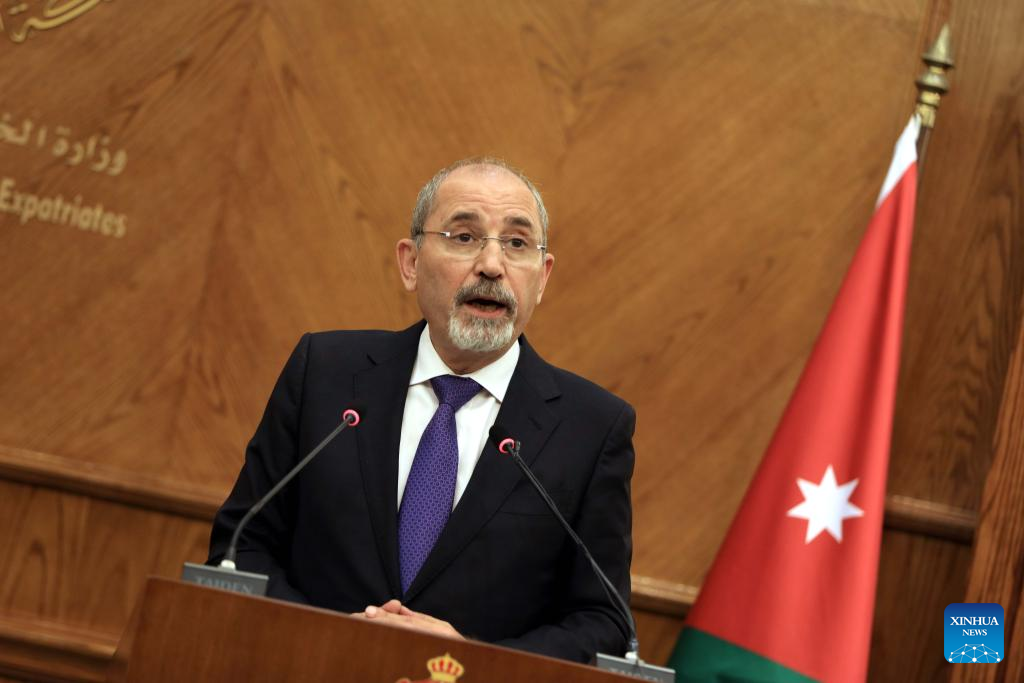 AMMAN, April 24 (Xinhua) -- Jordan's Foreign Minister Ayman Safadi on Thursday stressed the necessity of halting the aggression on Gaza, reaching an immediate ceasefire, fully implementing the prisoner exchange agreement, and allowing the entry of humanitarian aid into Gaza.