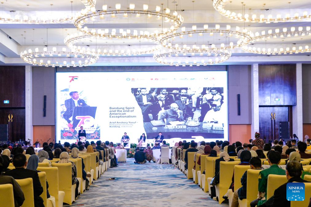 This photo taken on April 24, 2025 shows the interactive discussion session of an international academic symposium titled "Seventy Years of Bandung Spirit: Strengthening Global South Development Amidst Global Challenges" in Bandung, Indonesia. The symposium was held here on Thursday to commemorate the 70th anniversary of the Bandung Conference. More than 400 government officials, diplomatic envoys, scholars and youth representatives from China, Indonesia, India, Pakistan and other countries and regions attended the meeting. (Xinhua/Xu Qin)