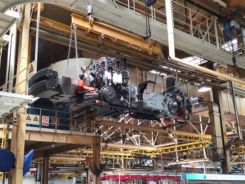 Photo taken on April 25, 2025 shows an assembling line of YTO Group Corporation in Luoyang, central China's Henan Province. (People's Daily Online/Lu Yang)