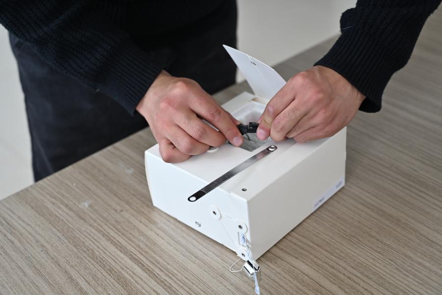 A staff member operates a meteorological observation device at the Tuotuohe Meteorological Station in northwest China's Qinghai Province, March 21, 2025. (Xinhua/Qi Zhiyue)