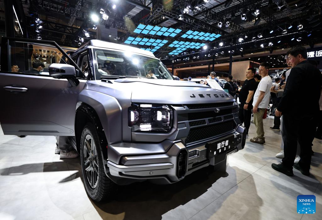 Visitors look at a vehicle of Chinese car brand Jetour at the 21st Shanghai International Automobile Industry Exhibition in east China's Shanghai, April 26, 2025. The exhibition, also known as Auto Shanghai 2025, not only foreshadows technological trends in the global auto market, but also demonstrates the strength and confidence of China's rising automakers in the face of established global giants. (Xinhua/Fang Zhe)