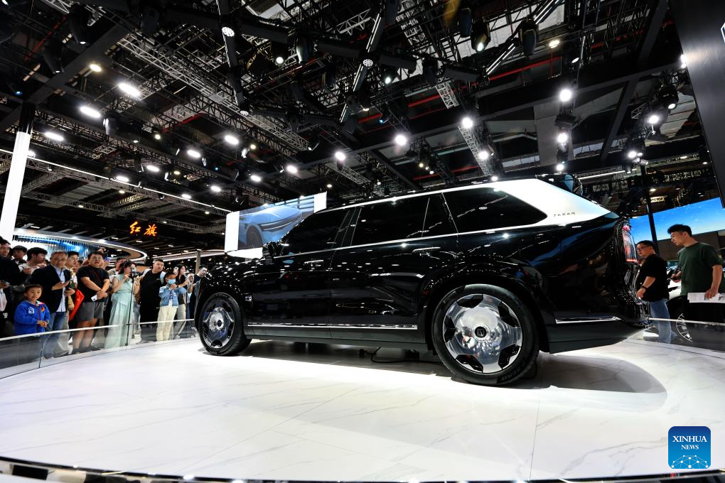 Visitors look at an exhibit of Chinese car brand Zeekr at the 21st Shanghai International Automobile Industry Exhibition in east China's Shanghai, April 26, 2025. The exhibition, also known as Auto Shanghai 2025, not only foreshadows technological trends in the global auto market, but also demonstrates the strength and confidence of China's rising automakers in the face of established global giants. (Xinhua/Fang Zhe)