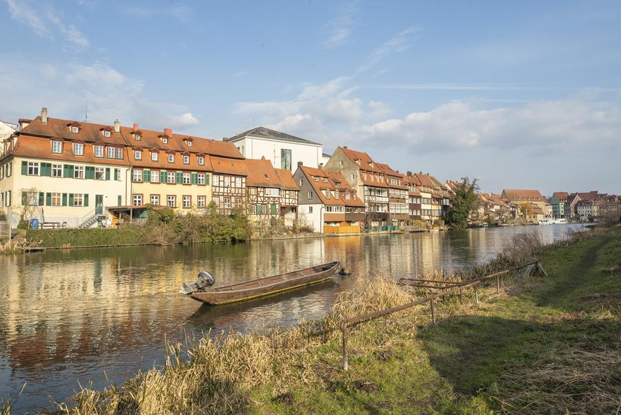 This photo taken on March 23, 2025 shows a view of Regnitz River in the ancient town of Bamberg in Bavarian state, Germany. (Xinhua/Zhang Fan)