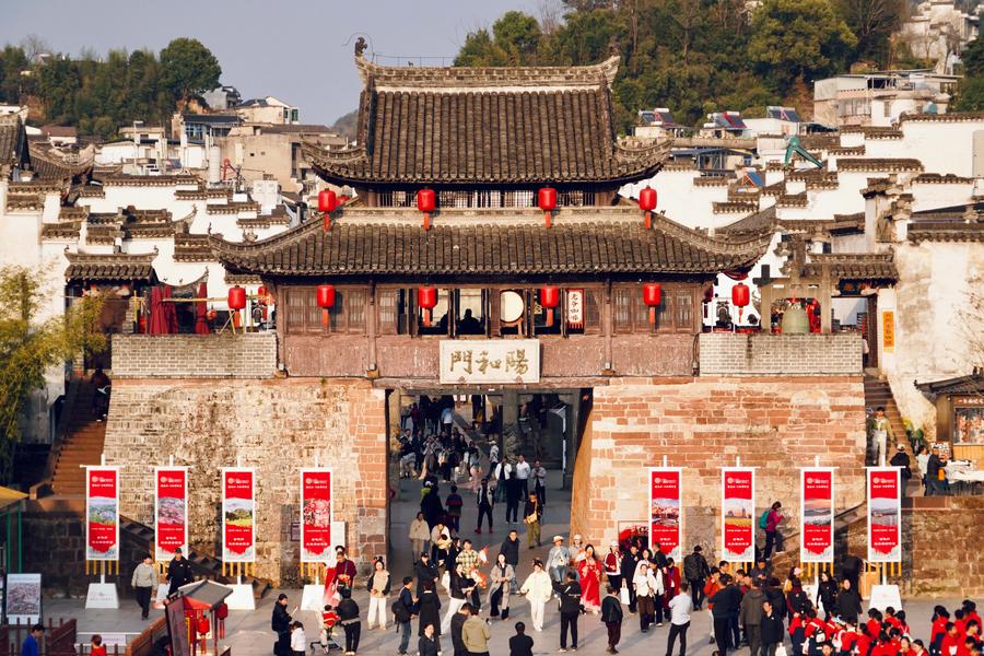 This photo taken on March 18, 2025 shows the Yanghe Gate of Huizhou ancient town in Shexian County, east China's Anhui Province. (Xinhua/Du Juanjuan)