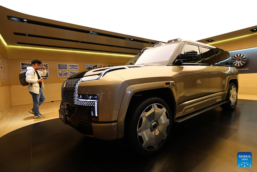 This photo taken on April 25, 2025 shows a Yangwang U8L of BYD at the 21st Shanghai International Automobile Industry Exhibition in east China's Shanghai. Themed "Embracing Innovation, Empowering the Future," the exhibition, also known as Auto Shanghai 2025, kicked off here on Wednesday, attracting nearly 1,000 noted enterprises from 26 countries and regions. In addition to new models debuting, automakers also seized the stage with their latest intelligent vehicle technologies, including intelligent driving, artificial intelligence (AI) system, and smart cockpits. (Xinhua/Fang Zhe)