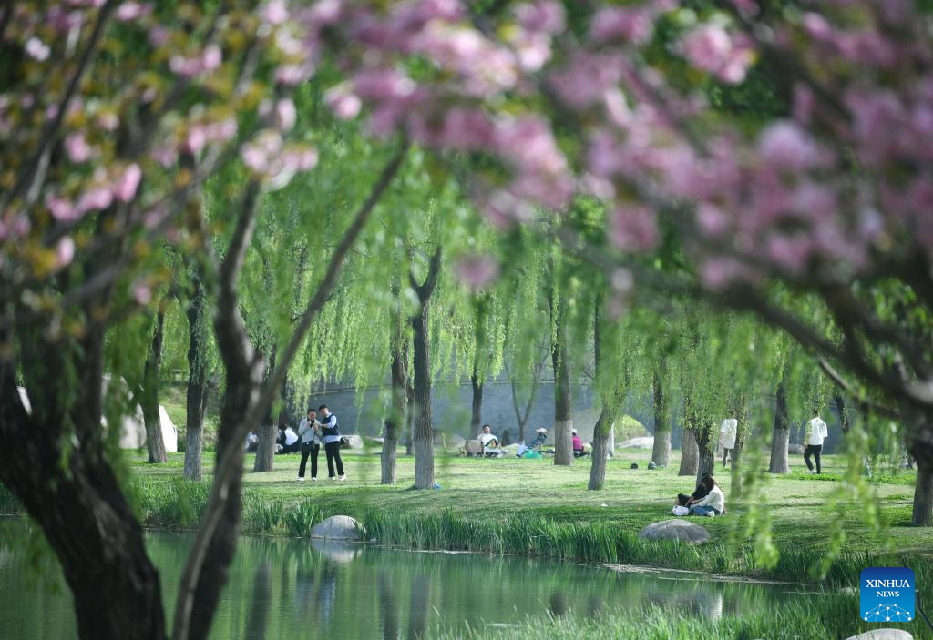 People enjoy their leisure time at a park in Xi'an, northwest China's Shaanxi Province, April 8, 2025. (Xinhua/Zhang Bowen)