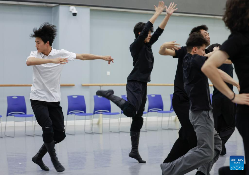 Luo Hao practices Uygur dance at the Dance Academy of Xinjiang Arts University in Urumqi, northwest China's Xinjiang Uygur Autonomous Region, April 14, 2025. (Xinhua/Wang Fei)