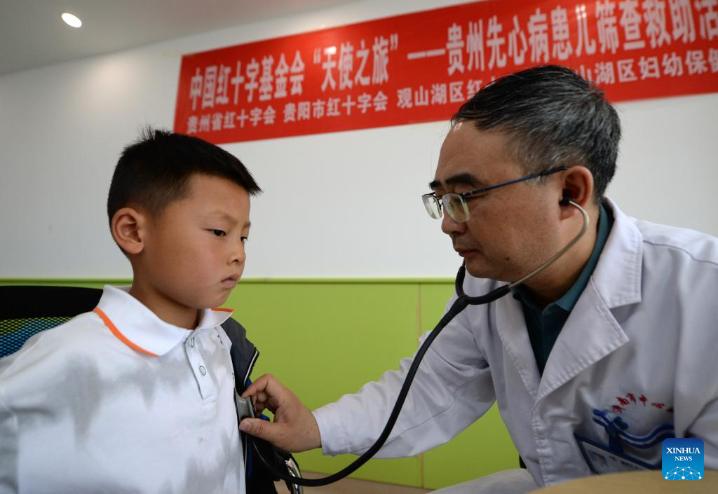 A medical expert examines a child at a hospital in Guiyang, southwest China's Guizhou Province, April 22, 2025. Recently, a congenital heart disease (CHD) screening program has been carried out in Guizhou Province. Children who are screened in accordance with surgical indications can receive free surgical treatment.