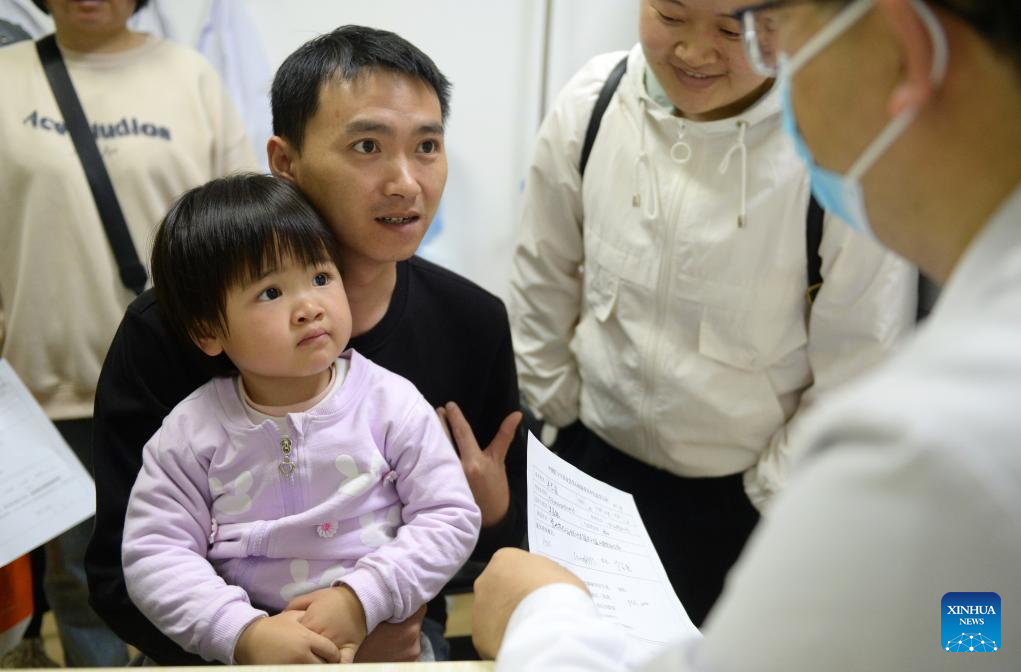 A medical expert examines an infant at a hospital in Qingzhen City, southwest China's Guizhou Province, April 23, 2025. Recently, a congenital heart disease (CHD) screening program has been carried out in Guizhou Province. Children who are screened in accordance with surgical indications can receive free surgical treatment.