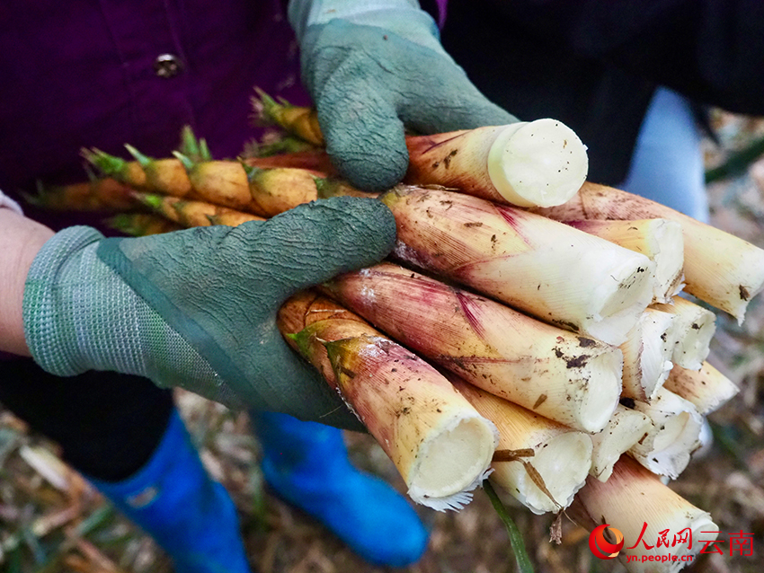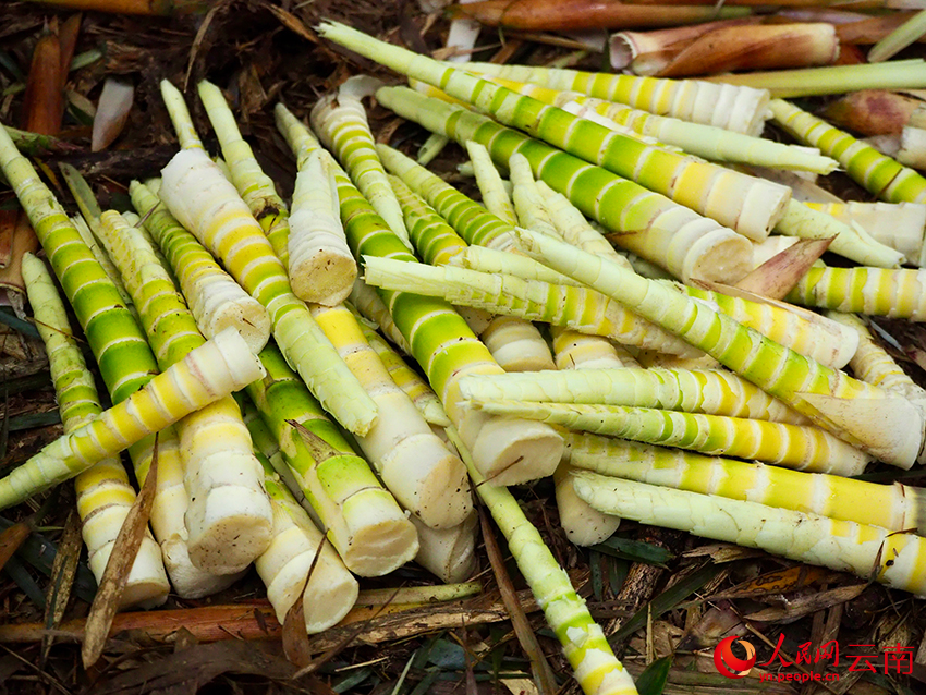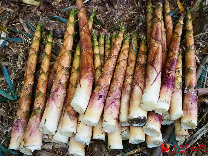 Photo shows freshly harvested bamboo shoots in Daguan county, Zhaotong city, southwest China's Yunnan Province. (People's Daily Online/Wang Xian)