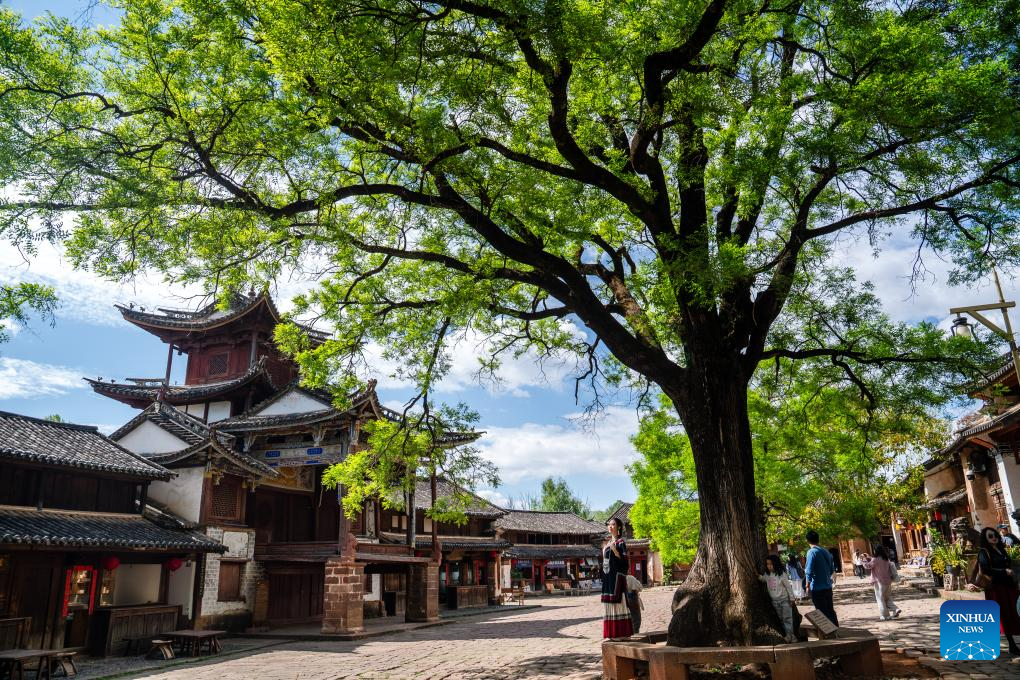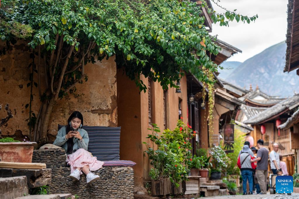 Villagers and tourists are pictured in Shaxi Town, Jianchuan County, southwest China's Yunnan Province, April 18, 2025. A remote town in Jianchuan County, Shaxi was once an important trading hub for tea, herbs, silks and salt on the ancient Tea Horse Road, a trade route dating back to the Tang Dynasty (618-907). (Xinhua/Hu Chao)