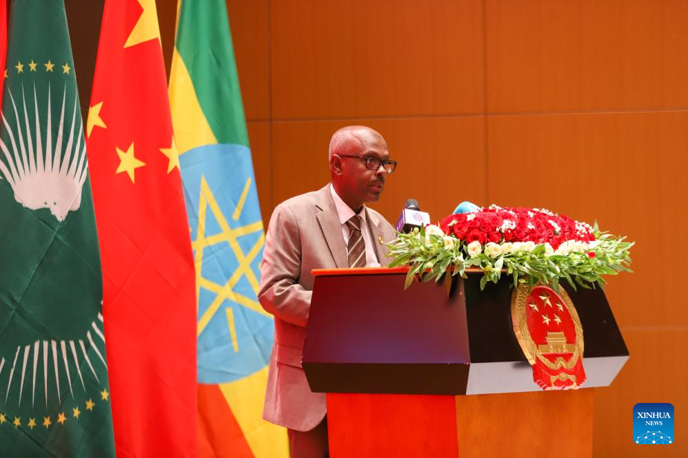 Moussa Mohamed Omar, deputy chief of staff of the African Union Commission, speaks at a launching event of the China Chamber of Commerce to Africa in Addis Ababa, Ethiopia, on April 28, 2025. The China Chamber of Commerce to Africa (CCCA) was officially launched Monday in Addis Ababa, with the aim of fostering broader Sino-African cooperation and contributing to a closer China-Africa community with a shared future. (Xinhua/Michael Tewelde)
